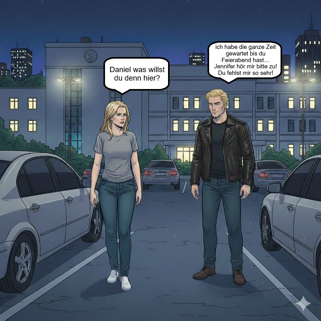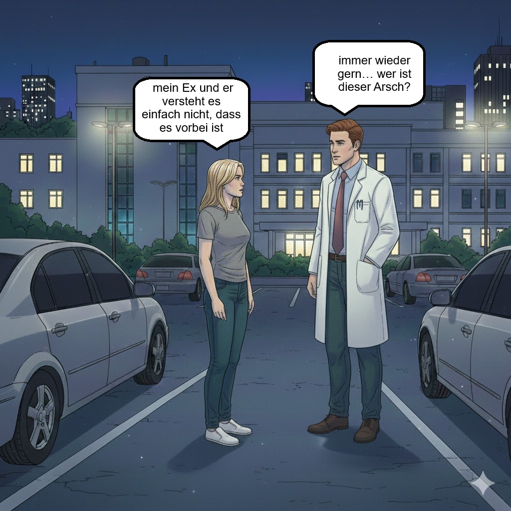 Ich war so aufgeregt ich durfte endlich bei einer OP dabei sein! Das ist verdammt großartig denn bei einer OP kann man so viel lernen… ich spürte die Freude auch nach meiner Schicht noch immer es war 18 Uhr und ich hab endlich Feierabend… zuerst ging ich mich duschen und zog mir meine Klamotten an dann holte ich aus dem Spind meinen Rucksack und plötzlich kam Maddox in den Umkleideraum Maddox:“ endlich Feierabend“ ich:“ du sagst es ich freue mich schon sehr auf meine Couch“ Maddox:“ ich war übrigens nochmal kurz bei unserem Patienten es ist alles in Ordnung und heute Nacht übernimmt Sam die Schicht und kümmert sich um den schlafenden Prinzen“ ich rollte mit den Augen ich:“ du solltest echt aufhören ihm so zu nennen“ er lachte und ging zu seinem Spind ich:“ also gut wir sehen und Morgen“ ich winkte ihm zu und verließ den Raum.. Sarah und Keith sind schon weg und als ich das Krankenhaus verließ atme ich tief durch und genoss die frische Luft und die Sonnenstrahlen auf meinem Gesicht doch die Freude blieb nicht lange denn plötzlich stand mein Ex Freund Daniel vor mir ich schaute ihm genervt an ich:“ was willst du denn hier?“ Daniel:“ ich habe die ganze Zeit gewartet bis du Feierabend hast… Jennifer hör mir bitte zu! Du fehlst mir so sehr!“ Ich:“ lass mich einfach in Ruhe ich habe kein bock mehr auf dich wann kapierst du das endlich?“ Daniel:“ es tut mir so leid was ich getan habe bitte komm zurück zu mir!“ Ich:“ Nein! Jetzt lass mich ja in Ruhe!“ Plötzlich stand Maddox neben mir und legte einen Arm um mich Maddox:“ was ist hier los süße?“ Daniel runzelte die Stirn und musterte Maddox Daniel:“ wer ist dieser Clown?“ Maddox:“ Dieser Clown ist ihr Freund also hau ab und lass meine Freundin in Ruhe kapiert“ Daniel:“ du gehst mit diesem Kerl? Ist das dein Ernst?“ Ich biss die Zähne fest zusammen ich:“ Lass. Mich. In. Ruhe!“ Maddox und ich gingen an Daniel vorbei und er führte mich zu seinem Auto ich:“ Danke Maddox“ Maddox:“ immer wieder gern… wer ist dieser Arsch?“ Ich:“ mein Ex und er versteht es einfach nicht, dass es vorbei ist“ Maddox:“ komm ich bring dich nach Hause“ ich:“ du bist ein Schatz Danke“…