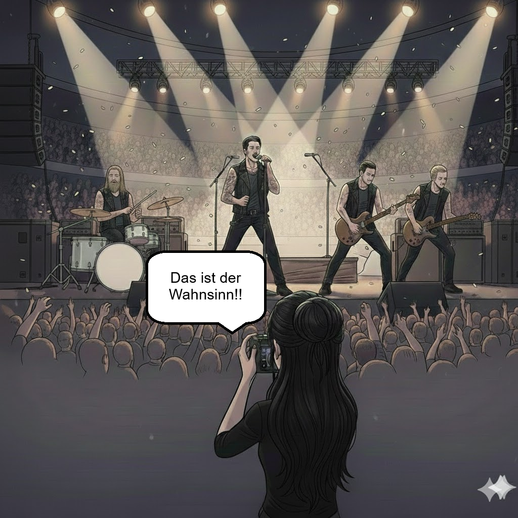 Als wir dann bei der Konzerthalle ankamen schnappte ich mir meine Kamera aus dem Koffer und folgte den Jungs auf die Bühne.. Hier oben zu stehen war einfach atemberaubend ich kann mir kaum vorstellen wie das ist hier oben zu Singen während dir tausende von Leuten zusehen.. Auf der Bühne waren schon die Instrumente aufgestellt und jeder setzte oder stellte sich auf seinen Platz ich ging von der Bühne und setzte mich in die erste Reihe und schon ging die Musik los und ich schaute den vier Jungs zu… Als ich Alec´s Stimme hörte bekam ich Gänsehaut es hörte sich so schön an und ich schloss für einen Moment die Augen.. Wie es wohl wäre wenn er nur für mich singen würde? Ich schüttelte den Kopf und öffnete meine Augen dann stand ich auf und begann Fotos zu machen.. Ich weiß nicht wie viele Fotos ich gemacht habe aber es waren sehr viele und nach einer Stunde machten die Jungs Pause und ich ging wieder auf die Bühne Ich:“ Wow das war fantastisch“ Taylor grinste Taylor:“ Haben wir dich also doch auf den Metal Geschmack gebracht“ Ich:“ Solang ich sie nur von euch höre“ Er zwinkert mir zu und ich ging zu Alec Ich:“ Deine Stimme ist unglaublich“ Alec:“ Danke Ela“ Ich:“ wieso sagst du ständig Ela zu mir?“ Alec:“ Ich brauch ja irgendeinen Kosenamen für dich“ Er lächelte mich an und ging von der Bühne Jack:“ Hey Elena möchtest du vielleicht mal probieren?“ Ich drehte mich zu Jack und er reichte mir seine Gitarre Ich:“ ich kann nicht spielen“ Jack:“ Das ist ganz einfach ich zeig dir wie das geht“ Ich nickte und ging zu Jack dann legte ich die Kamera auf den Boden und nahm seine Gitarre Jack:“ Hänge sie dir um den Hals und dann versuch mal zu spielen“ Ich mach genau das was er von mir möchte doch sobald ich Anfange zu spielen kam ein furchtbarer Ton aus den Boxen und ich zuckte zusammen Jack:“ Nur nicht so wild kleine das ist eine E-Gitarre die klingt anders als Akustikgitarren“ Ich:“ Sorry“ Jack:“ Wir haben ja noch einen Monat Zeit bis dahin wirst du mindestens so gut spielen wie ich“ ich kicherte und reichte ihm die Gitarre Ich:“ Das bezweifel ich aber trotzdem Danke“ Er grinste und ich schnappte mir wieder meine Kamera dann ging ich von der Bühne Ich:“ Hey Taylor wäre es okay wenn ich zum Bus gehe? Ich möchte anfangen zu schreiben“ Taylor:“ Natürlich nur zu“ Ich lächelte und verließ die Halle.. draußen stand Alec und rauchte eine Zigarette er lehnte total lässig an der Wand was ihm irgendwie unwiderstehlich macht Ich:“ Hey Alec ich geh zum Bus zurück und beginne mit dem Artikel“ Alec:“ Hast du eben mit der Gitarre gespielt?“ Ich nickte verlegen Alec:“ Zum Glück hat es keiner gehört sonst wäre der Saal Morgen leer“ Ich:“ Tut mir leid ich hab Jack vorgewarnt“ Alec:“ Du brauchst dringend Übung Ela“ er warf die Zigarette weg und ging wieder in die Halle zurück ich schaute ihm hinterher und seufzte ich werde aus diesem Kerl nicht schlau.. Als ich dann im Bus war setzte ich mich mit meinem Laptop zum kleinen Tisch und begann die Fotos auf meinen Laptop zu laden plötzlich klingelt mein Handy ich nahm es und hob ab Ich:“ Hallo?“ Isabel:“ Hey süße tut mir leid ich hab deine Nachricht jetzt erst gelesen ich war noch auf der Arbeit.. wie geht es dir? Wie sind die Jungs so?“ Ich kicherte Ich:“ Hey Isa die Jungs sind einfach toll und richtig nett“ Isabel:“ Sind sie so heiß wie auf den Bildern?“ Ich:“ Nein heißer.. ich mein es ernst das ist der Wahnsinn ich glaub noch immer das ich Träume“ Isabel:“ Ich beneide dich so süße! Vielleicht kannst du mich vorstellen? Das wäre der Wahnsinn!“ Ich dachte kurz nach Ich:“ Hey wieso kommst du nicht zum Konzert Morgen? Ich bin mir sicher du darfst zu mir Backstage kommen dann lernst du die vier kennen“ Sie war einige Minuten still dann quietschte sie auf Isabel:“ Oh mein Gott!!! Das klingt super ich bin dabei!!“ Ich:“ Gut dann rede ich mit den Jungs und schick dir die Details“ Isabel:“ Ich kann es nicht glauben… Ich muss mir sofort was zum anziehen suchen!! Wir hören uns süße bis bald!“ Sie legte einfach auf und ich kicherte.. Isabel ist manchmal echt verrückt aber dafür liebe ich sie so…